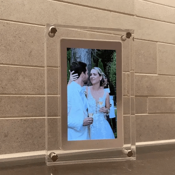 apreciam as inúmeras opções de personalizações e a forma dinâmica como o quadro exibe suas fotos/vídeos com facilidade