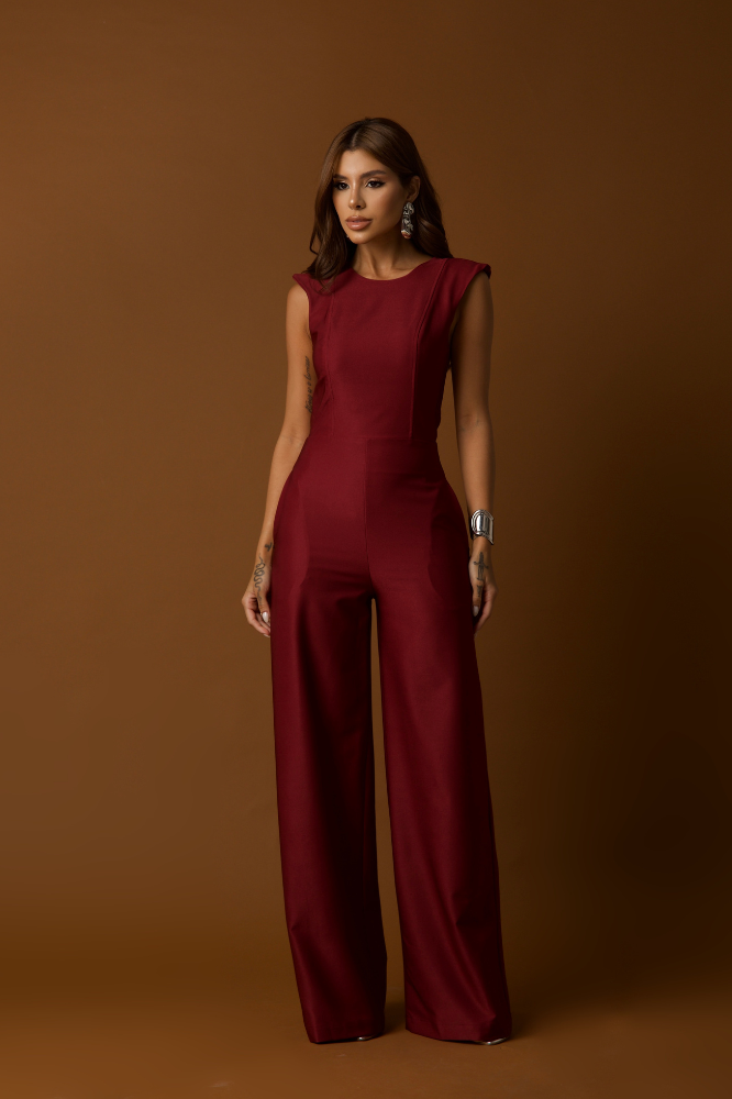 Conjunto Macacão Pantalona e Colete Removível Sense Cereja
