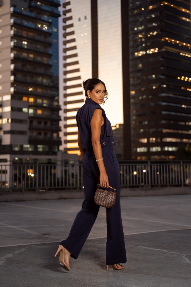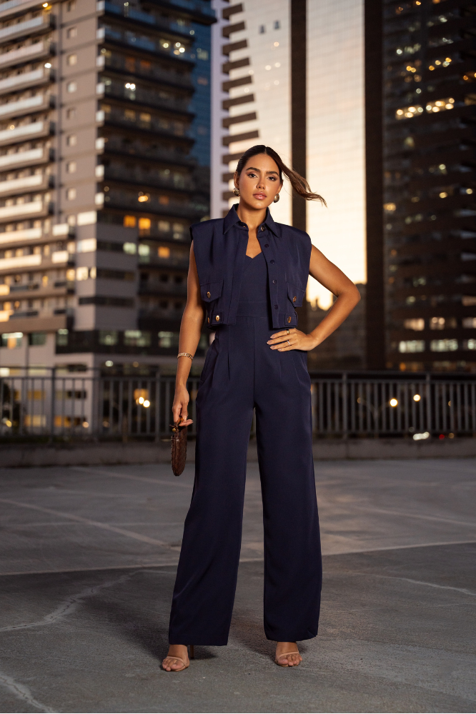 O Macacão Pantalona Jaque destaca-se pelo seu design sofisticado e detalhes cuidadosos. As alças duplas reguláveis proporcionam ajuste personalizado, o decote em V valoriza o colo de maneira discreta e elegante. Ideal para diversas ocasiões, desde eventos formais a encontros casuais sofisticados, o Macacão Jaque é perfeito para quem busca uma peça versátil e atemporal, é a escolha ideal para quem valoriza conforto e estilo em um único item de vestuário.