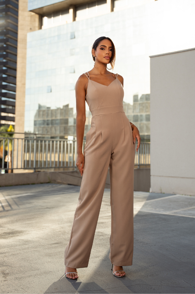 O Macacão Pantalona Jaque destaca-se pelo seu design sofisticado e detalhes cuidadosos. As alças duplas reguláveis proporcionam ajuste personalizado, o decote em V valoriza o colo de maneira discreta e elegante. Ideal para diversas ocasiões, desde eventos formais a encontros casuais sofisticados, o Macacão Jaque é perfeito para quem busca uma peça versátil e atemporal, é a escolha ideal para quem valoriza conforto e estilo em um único item de vestuário.