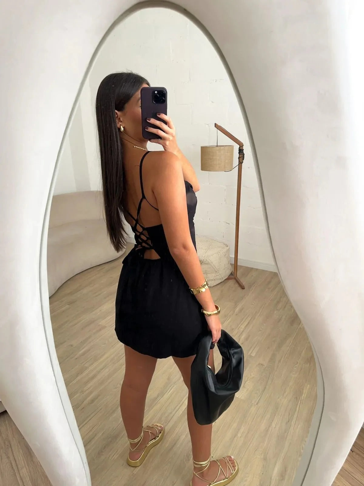 Com detalhe de amarração no busto e alcinhas finas, valoriza o colo e traz aquele ar delicado e moderno. O caimento ajustado na parte de cima alonga a silhueta, enquanto o shorts embutido dá liberdade e conforto para usar sem preocupações.